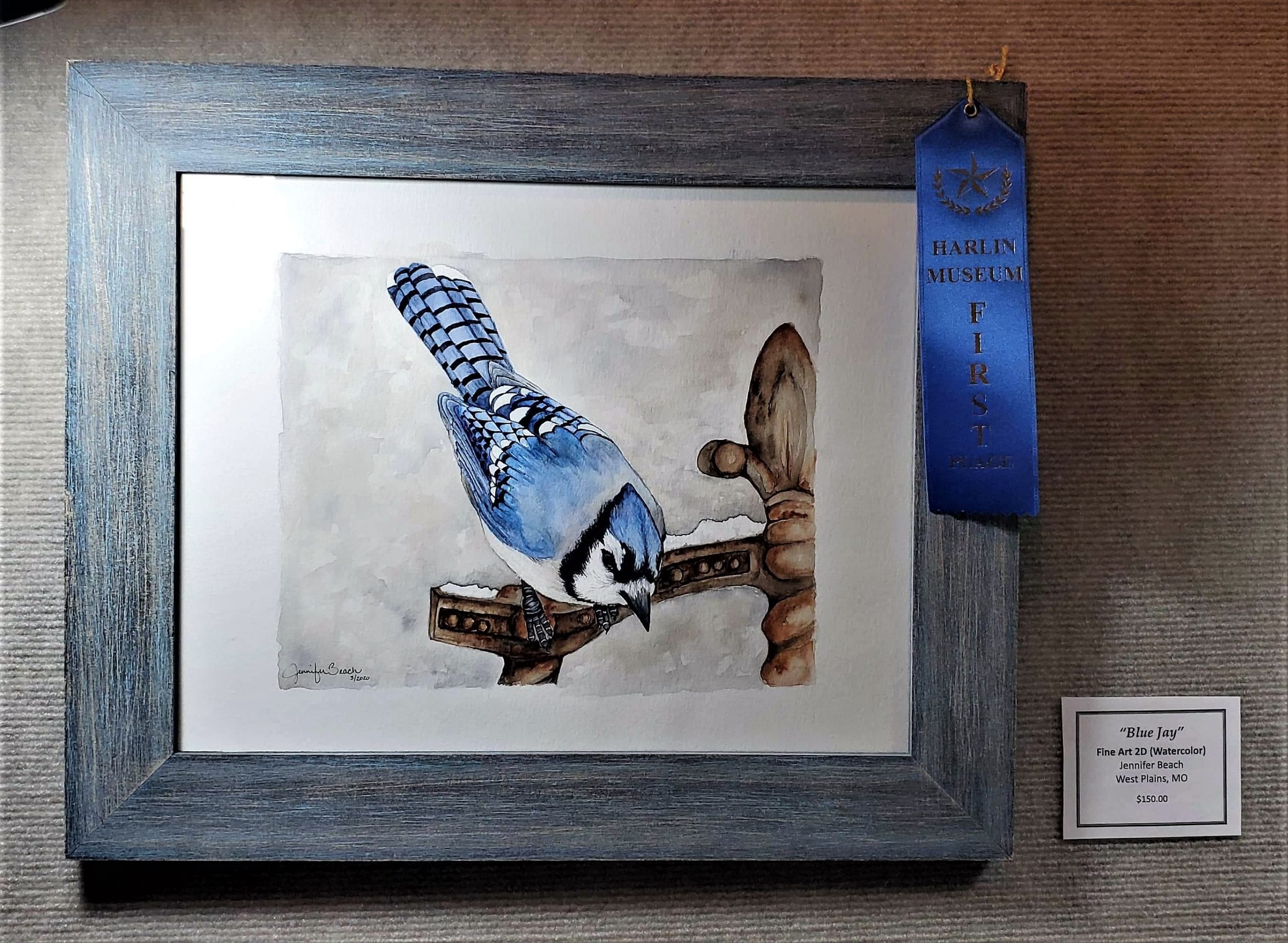 #43 – Blue Jay by Jennifer BeachBlue Jay by Jennifer Beach – 1st Place Winner, Fine Art Division, 2D, Advanced Class, Watercolor Category